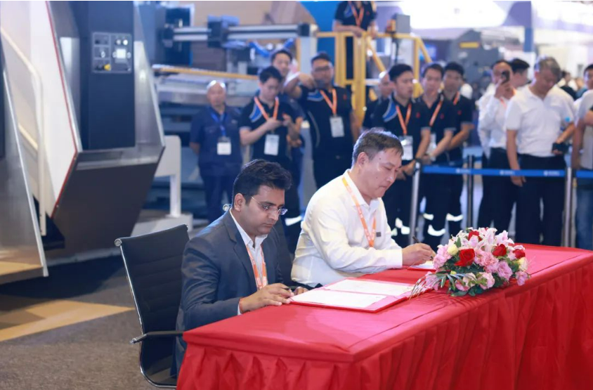 11時18分,佛斯伯亞洲與汕頭東社紙品有限公司舉行了簽約儀式。東社紙品有限公司總經(jīng)理趙澤強先生、總經(jīng)理周文喜先生和佛斯伯集團CEO Marco Bertola先生共同簽署了合作協(xié)議。汕頭東社紙品有限公司是華南地區(qū)首屈一指的包裝行業(yè)龍頭企業(yè),此次增購一條2.8米佛斯伯全自動高速瓦楞紙板生產(chǎn)線。展會現(xiàn)場,汕頭東社紙品還贈送佛斯伯亞洲“東方東社,在續(xù)情緣;國際展會,收獲滿滿”錦旗,祝賀與佛斯伯亞洲的合作,預(yù)祝展會取得圓滿成功。